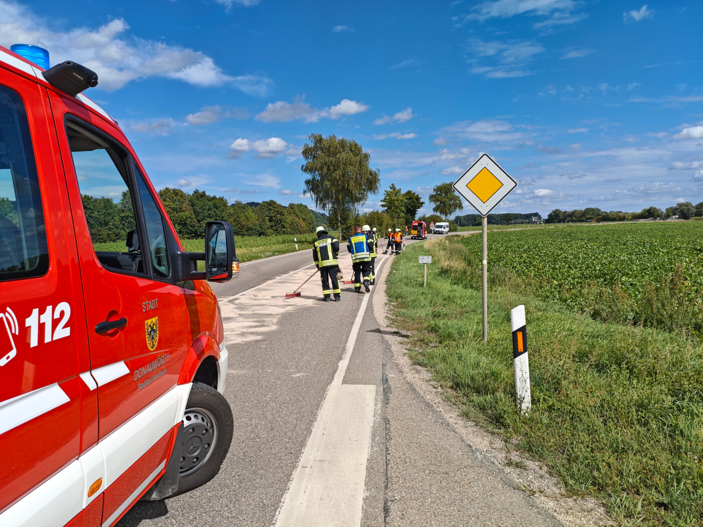 Auf der DON 29 Richtung Genderkingen hat ein LKW Kühlflüssigkeit verloren. Diese wurde mit Ölbindemittel aufgenommen und fachgerecht entsorgt. Während des Einsatzes war die Straße einspurig befahrbar.