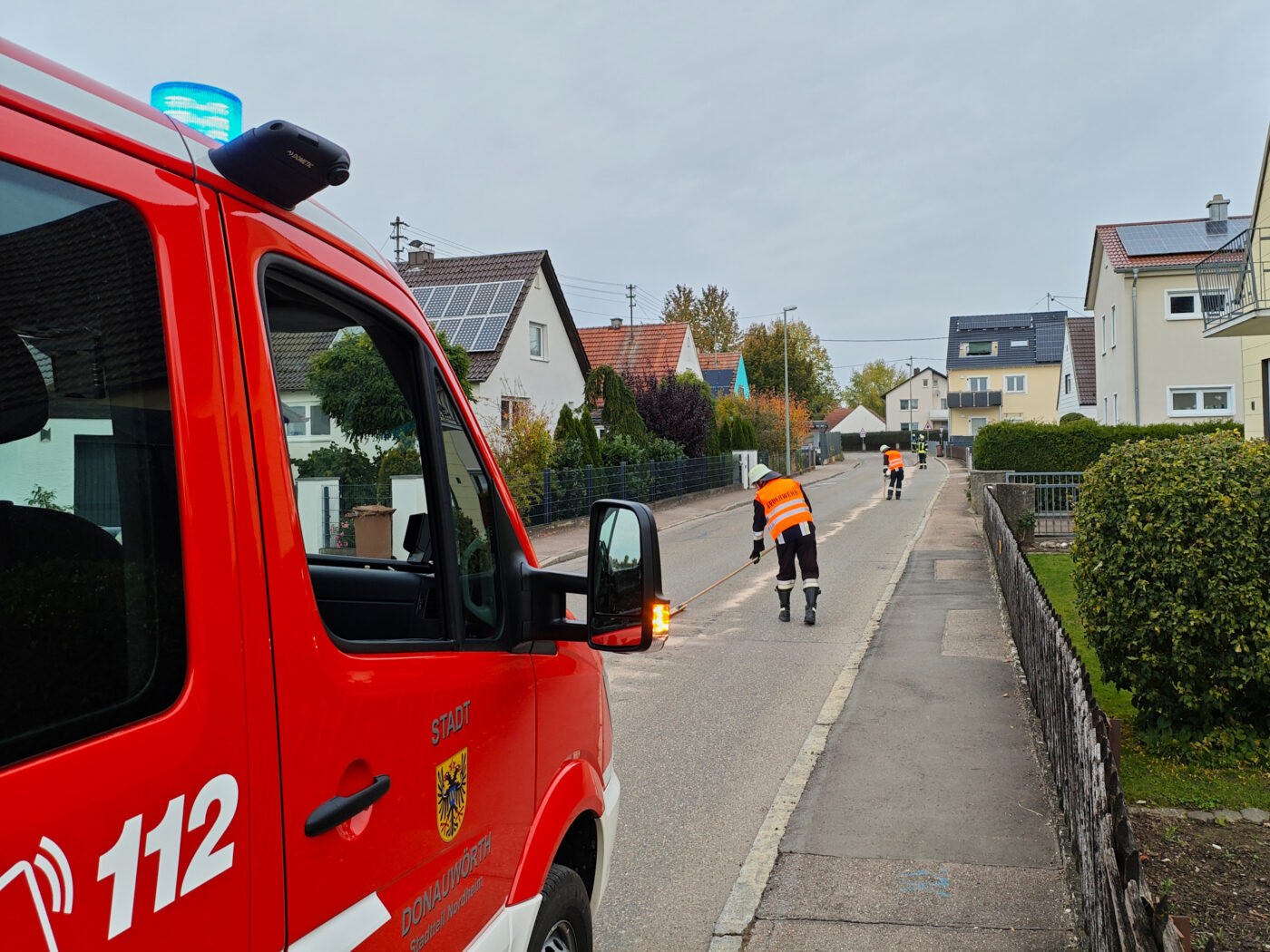 Wir wurden zu einer Ölspur alarmiert, die sich von der Bäumenheimer Straße über die Rainer Straße durch ganz Nordheim zog. Der ausgelaufene Kraftstoff wurde mit Ölbindemittel aufgenommen und fachgerecht entsorgt.