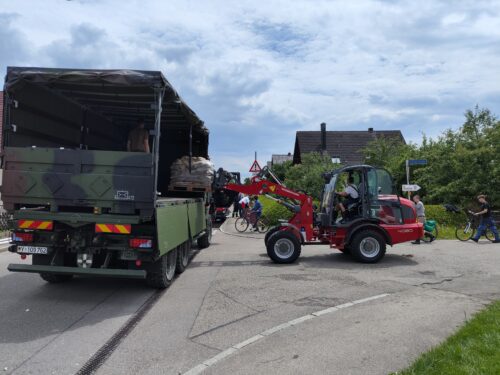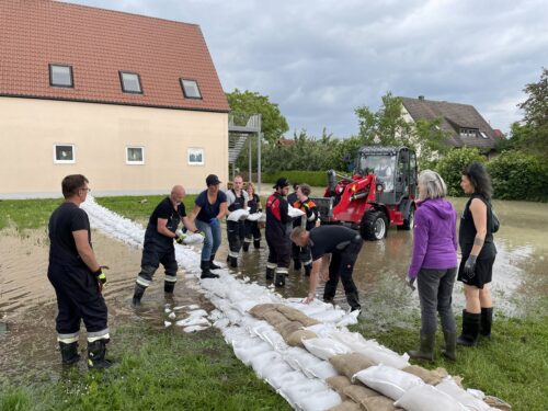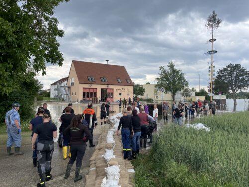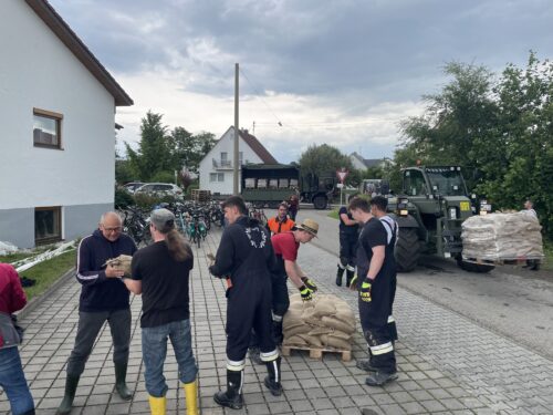 In kürzerster Zeit war neben unseren Kammeraden von Feuerwehr, THW, Johanniter und Bundeswehr eine unglaubliche Menge an freiwilligen Helfern aus Nordheim und Umgebung am Feuerwehrhaus in Nordheim. So konnten wir gemeinsam bis zum frühen Abend den Damm fertigstellen.