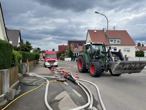 Nachdem sich die Hochwassersituation in Nordheim am Mittag in kürzerster Zeit verschlechtert hatte, wurde nach Prüfung der Situation beschlossen, einen Damm zum Schutz der Nordheimer zu errichten.