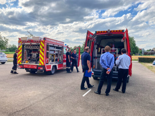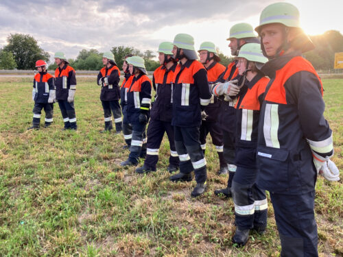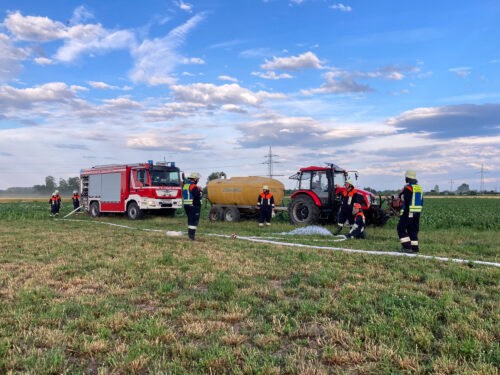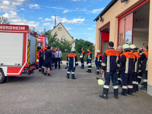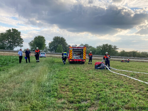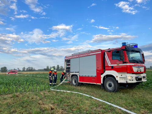 Bei der anschließenden Nachbesprechung fasste SBM Stecker kurz und bündig zusammen: Einsatzziel erreicht, weder Material, noch Mannschaft beschädigt, alles in Ordnung! Anschließend gab es noch einige Tipps und Erfahrungswerte vom Fachmann, damit die Wehren aus Nordheim und Donauwörth für alle, in der auf Hochtouren laufenden Erntesaison, zu erwartenden Einsatzlagen bestens vorbereitet sind. Zu einem der Übung sehr ähnlichen Realeinsatz war es nur wenige Stunden zuvor in Druisheim gekommen.