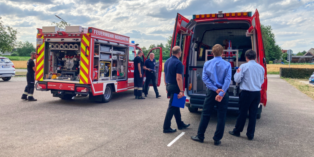Entspricht die Feuerwehr Nordheim den Anforderungen? Dieser Frage ging die Delegation der Stadtbrandinspektion, bestehend aus Alexander Zobel und Thomas Stecker, auf den Grund. Sie Verschafften sich einen Überblick über den Wartungs- und Pflegezustand der Ausrüstung sowie des Gerätehauses. Außerdem wurden Stärke und Ausbildungsstand der Mannschaft unter die Lupe genommen.