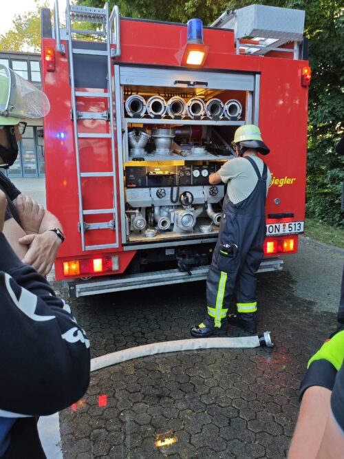 Im Rahmen des Lehrgangs konnten und mussten die Kameraden sich mit der Technik anderer Wehren aus dem Stadtgebiet und somit anderer Hersteller vertraut zu machen. Auch die Besonderheiten von wasserführenden Fahrzeugen und fest verbauter Pumpen, sowie das Zusammenspiel mehrerer Pumpen wurden theoretisch erklärt und praktisch durchgespielt. Während den großzügig gestalteten Praxiseinheiten mussten die Kameraden das theoretisch erworbene Wissen anwenden und konnten Erfahrungen im Umgang mit den Gerätschaften sammeln.